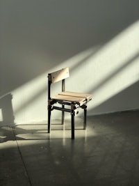 Stolen är konstruerad av järnrör, björk, skruv och vingmutter. Den är tänkt att hålla iflera generationer, och systemets knutar möjliggör olika sorters material, till exempel papprör som ben; allt för att anpassas efter tid.