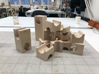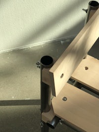 ”Scaffolding” är en modulär möbel som likt en byggställning anpassarsig efter platsen och behovet den ska uppfylla. I denna form är komponenterna ihopsatta som en stol, men samma komponenter kan skruvas upp och monteras om tex till en bänk. Lägg till eller ta bort rör och knutar för att ge den nya former och möjligheter.